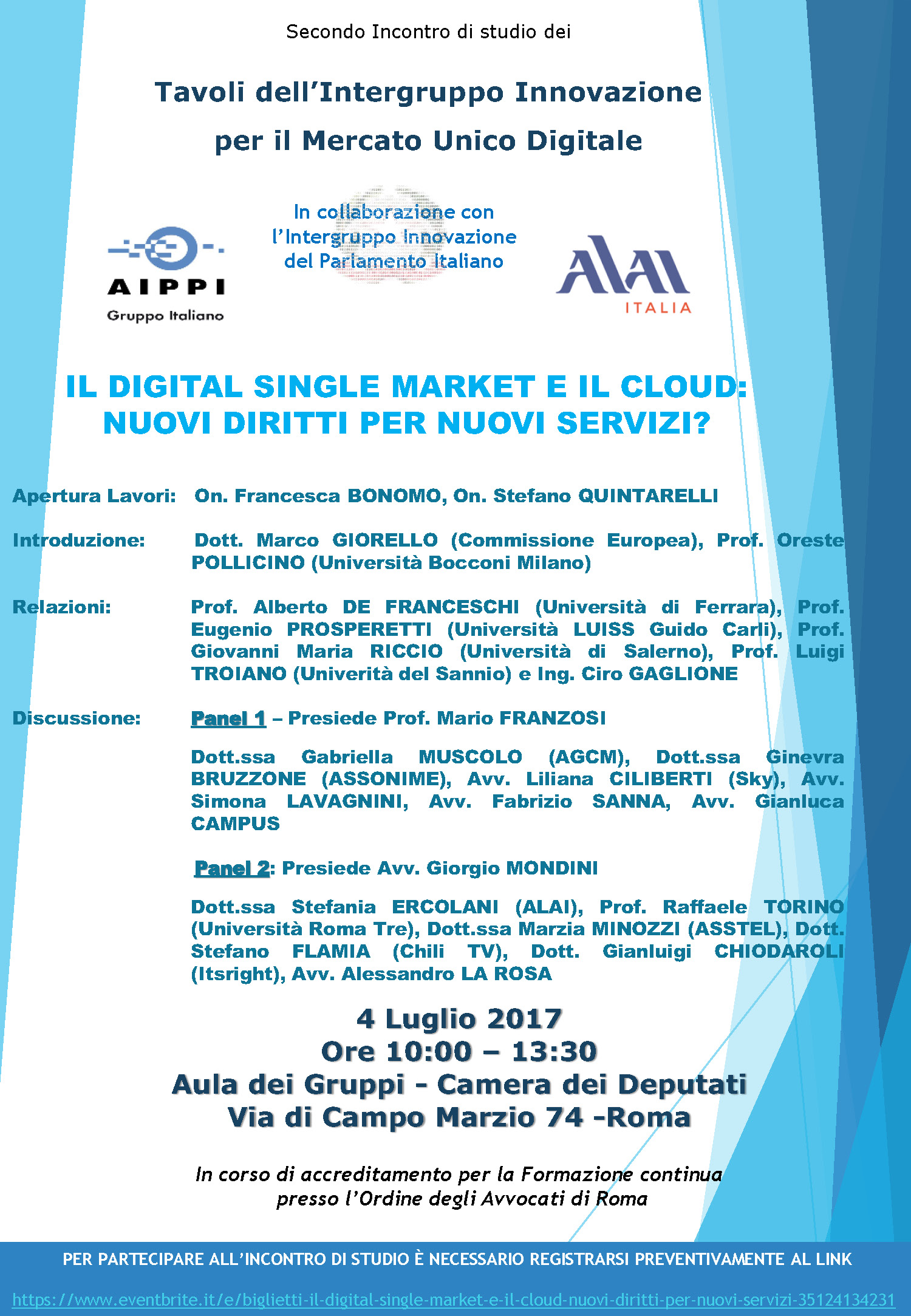 L’Intergruppo parlamentare per l’innovazione tecnologica ospiterà il Secondo Tavolo dedicato a “Il Digital Single Market e il cloud: nuovi diritti per nuovi servizi?”