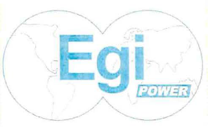 All'interno di tale figura, compare la scritta, in carattere standard, con la prima lettera maiuscola, "EGI" di colore azzurro; al di sotto di tale scritta, spostata verso destra, compare, all'interno di una cornice rettangolare, la scritta in bianco, su sfondo azzurro, "POWER", in carattere standard.