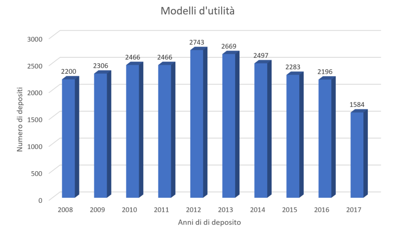 Grafico 1- Numero di modelli d’utilità depositati per anno