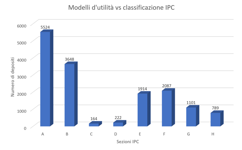 Grafico 2 – Numero di modelli d’utilità classificati nelle varie sezioni IPC