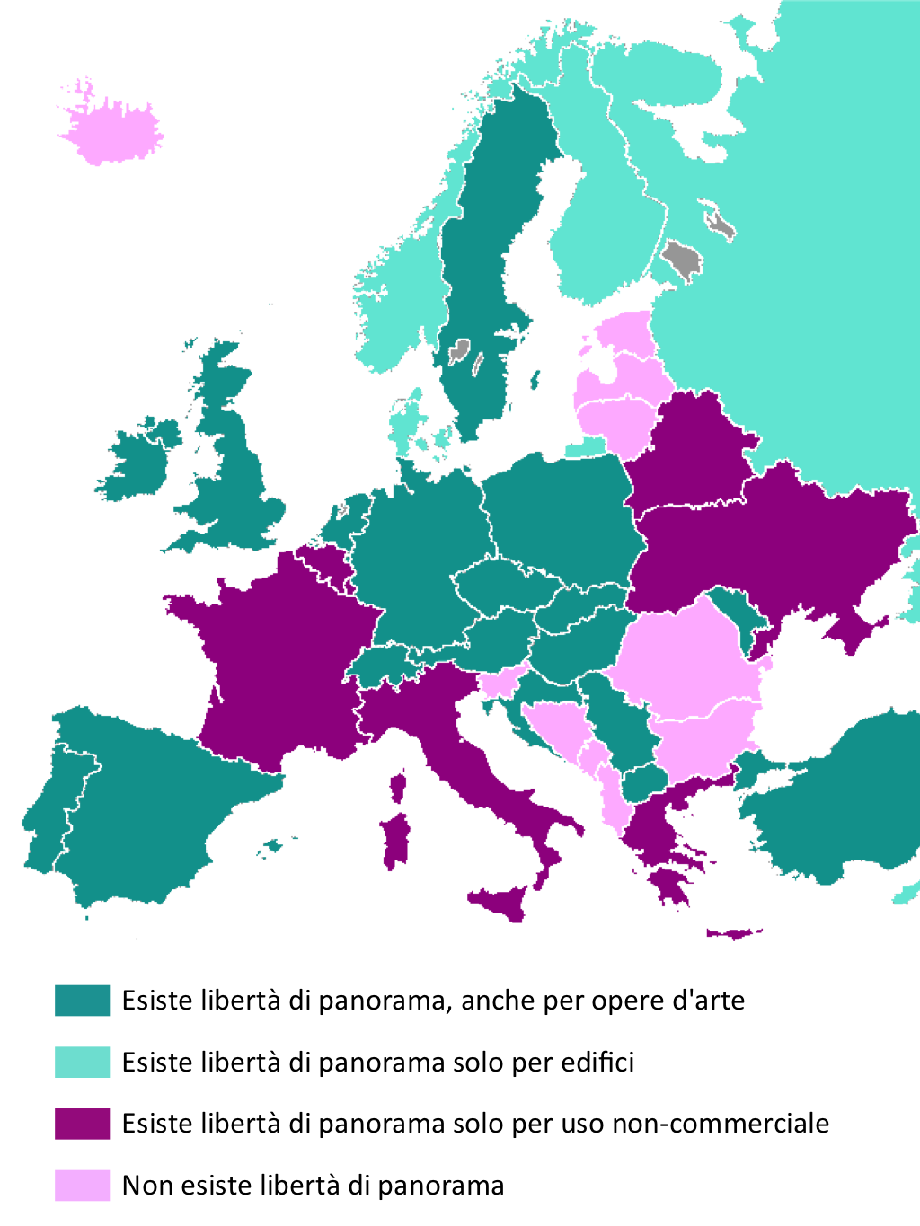 La Direttiva 2001/29/CE già prevedeva, all’art. 5 par. 3 lett. h, la facoltà per gli Stati Membri di recepire una eccezione al diritto di autore, la c.d. “libertà di panorama”, in forza del quale scattare e riprodurre fotografie di opere dell’architettura e della scultura posti stabilmente in luoghi pubblici sarebbe consentito senza autorizzazione da parte del titolare dei relativi diritti d’autore, sempre se tali usi siano effettuati per fini non commerciali.