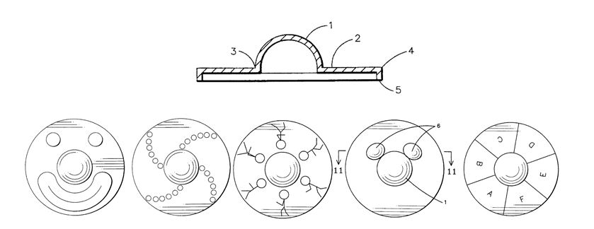 I disegni sembrano quindi indirizzare verso forme e modalità di utilizzo differenti rispetto al “fidget spinner” del 2017. Non ci resta che leggere la descrizione. Gli scopi elencati nell’introduzione sono simili a quelli pubblicizzati per il “fidget spinner” del 2017 (divertimento, aiuto per smettere di fumare) ma dalla descrizione dettagliata emerge una forma differente: una cupola centrale 1 che si allarga in una gonna periferica 2. Nessuna traccia del cuscinetto, della forma a bracci e della possibilità di tenere il giocattolo con due dita.