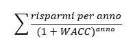 Dopo aver determinato il costo medio ponderato del capitale (WACC), è possibile stabilire il valore del brevetto utilizzando la seguente formula: