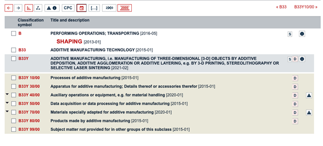 Il sistema più intuitivo per navigare nella classificazione CPC è il sito della banca dati Espacenet: https://worldwide.espacenet.com/patent/cpc-browser.
