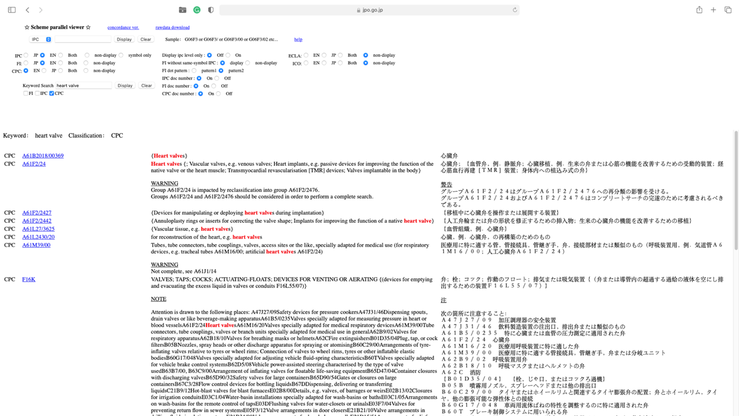 Figura 5 – Maschera di ricerca del JPO per i codici CPC