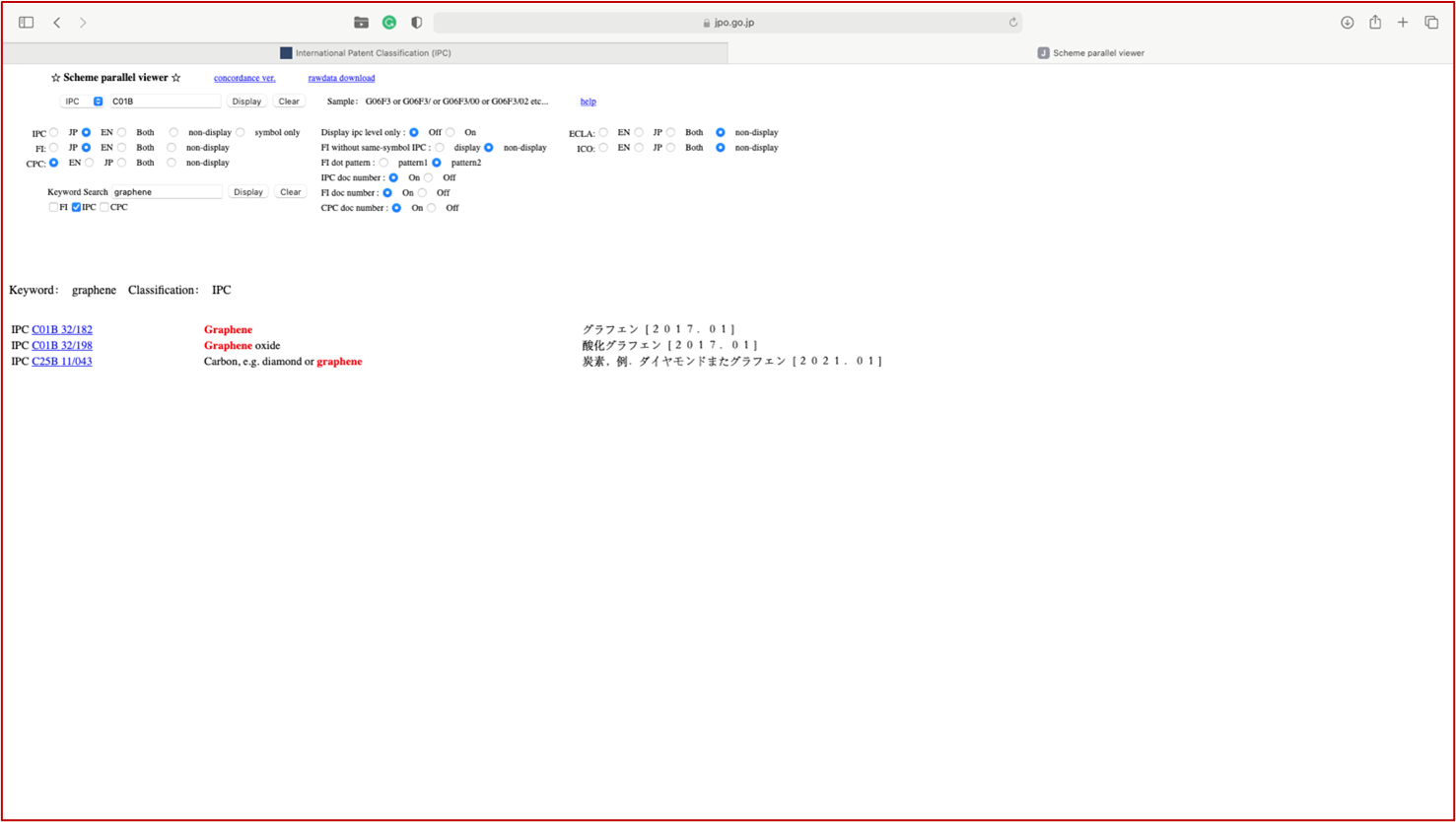 Figura 2 – Schermata di ricerca dei codici IPC (sito JPO)