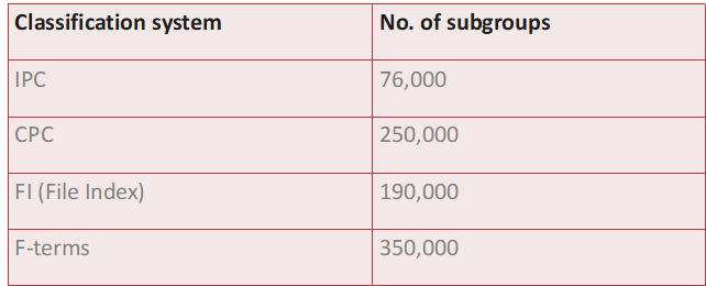 I brevetti giapponesi sono ricercabili tramite due sistemi di classificazione utilizzati solo dal JPO (Japan Patent Office): File Index (FI) e F-terms.
