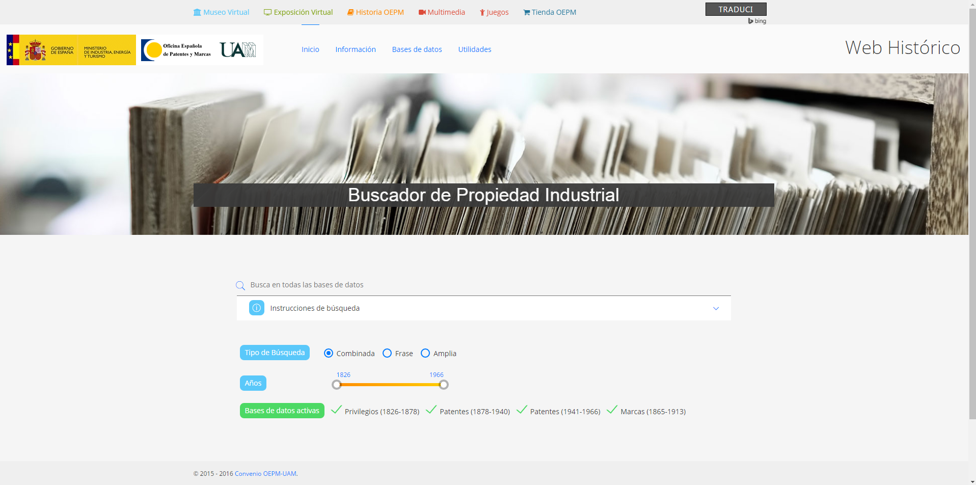 La prima banca dati che presento è quella spagnola e contiene oltre a brevetti (dal 1878 al 1966) e marchi (dal 1865 al 1913) anche i cosiddetti “privilegi” dal 1826 al 1878 ed è consultabile a questo indirizzo.